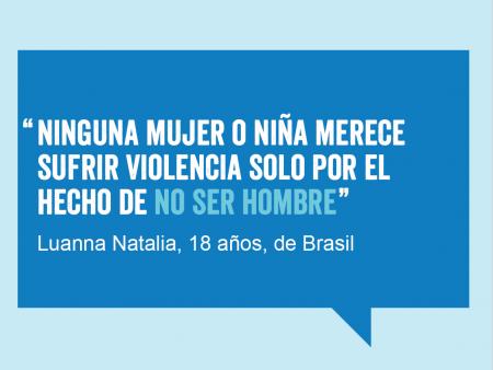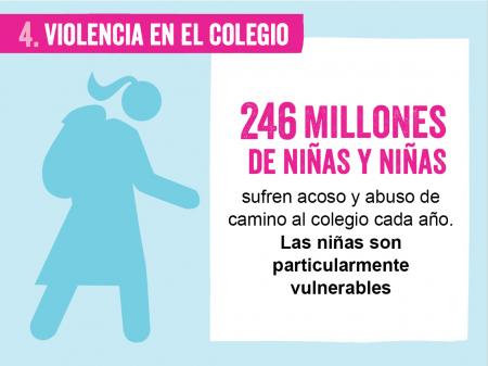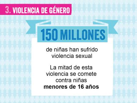 La violencia de género es una pandemia que viola los derechos de las niñas en todo el mundo. Desde Plan International solicitamos el compromiso de los gobiernos para poner en marcha las partidas y acciones necesarias para cumplir las promesas realizadas en los Objetivos de Desarrollo Sostenible, que marcan como meta eliminar todas las formas de violencia contra las mujeres y las niñas en el ámbito público y privado para 2030.