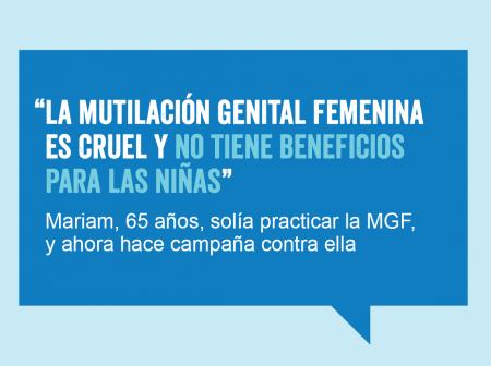 La mutilación genital femenina es una práctica tradicional que supone una forma de violencia contra las niñas y una violación de los derechos humanos. Consiste en la extirpación total o parcial de los genitales femeninos a niñas y mujeres jóvenes por razones no médicas. Ninguna religión la contempla como obligatoria pero es una práctica habitual para muchos grupos religiosos (musulmanes, cristianos, animistas). La mutilación genital femenina no entiende de clases sociales ni de niveles educativos.
