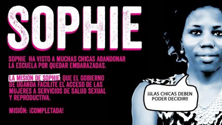 “Cuando estaba en la escuela vi a demasiadas niñas abandonar sus estudios por quedar embarazadas y me di cuenta de que si las chicas no cuentan con información, no tienen poder, y supe que tenía que hacer algo” Explica Sophie, que consiguió recolectar 39.000 firmas en su campaña para que las chicas disfruten de servicios de educación y salud que les permita evitar embarazos no deseados.