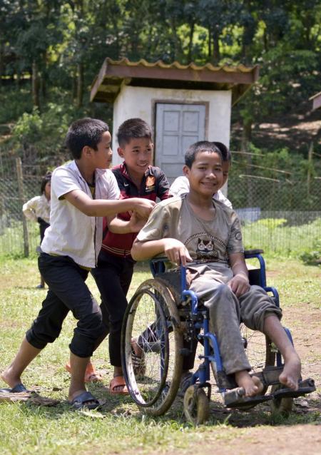 “Era muy complicado para Nak continuar con su educación. No pudo andar desde su grave enfermedad y no había ningunas facilidades para niños con discapacidad en nuestro colegio. Creo que el principal reto es que vaya al colegio, y a largo plazo, asegurarnos de que desarrolla habilidades para cuidar de sí mismo en la vida diaria” dice Souliphon, la profesora de Nak durante segundo de primaria.