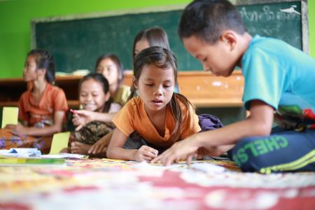Lamboud tiene nueve años y participa en nuestro programa Childrens Literacy Boost (Impulso de la Alfabetización Infantil) que ofrece actividades extraescolares para que los niños y niñas mejores sus habilidades de lectura.