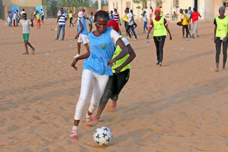 Ndiémé, Aby y Aminata son miembros del proyecto Kick-Start for Girls’ Leadership de Plan International, que alienta a las niñas a participar en actividades deportivas, potenciando sus aptitudes de liderazgo y ayudándolas a empoderarse. Con 420 miembros, las niñas juegan al fútbol cada semana y aportan ideas sobre cómo pueden ayudar al desarrollo en su comunidad.