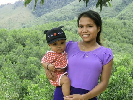 Khuyen trabajaba en una granja, mientras que su marido era jornalero, así que, a veces, le tocaba ir al bosque a recoger miel. Pero cuando estalló la pandemia de la COVID-19, como el país estuvo confinado durante tres meses, su marido se quedó sin trabajo y no encontró nada. El transporte de alimentos también se paralizó, así que tampoco había nada que comprar en el mercado. La familia estuvo meses dependiendo exclusivamente de las verduras que podían cultivar ellos mismos.
