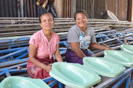Afortunadamente, las cosas están cambiando. Después de asistir a nuestros talleres, Mama Fina ha decidido crear su propio negocio de fabricación de inodoros. En un pueblo rural de la provincia de Nusa Tenggara Oriental, esta mujer lidera, con mucho entusiasmo, un grupo de mujeres emprendedoras que fabrican retretes con el objetivo de que todas las personas de su comunidad tengan acceso a uno.
