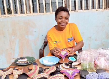 Después de graduarse, le hemos ofrecido las herramientas y materiales que necesitaba para emprender su propio negocio y, desde entonces, es toda una experta en este área. Ella misma elabora las sandalias y demás artesanías en casa, y, después, los vende a un máximo de siete euros. También expone sus diseños en foros de ventas especiales y, gracias a su trabajo, ha tiene clientes regulares.