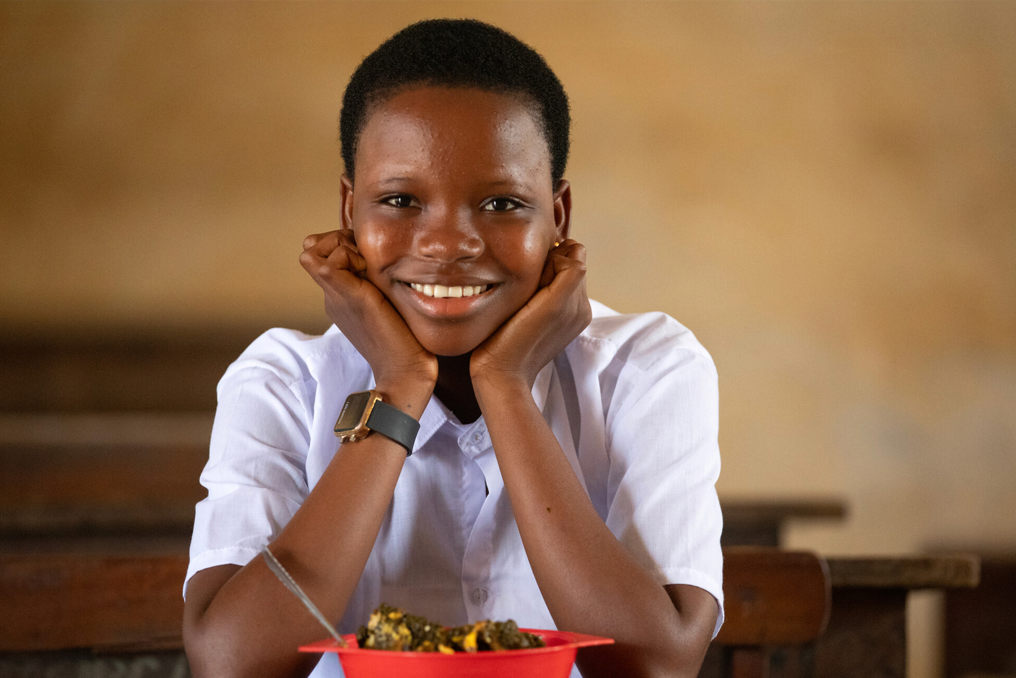 “Una comida me hace feliz. Me da fuerza”, dice Fatmata. “Quiero ser enfermera cuando sea mayor. Y sé que puedo conseguirlo porque como y aprendo”.
