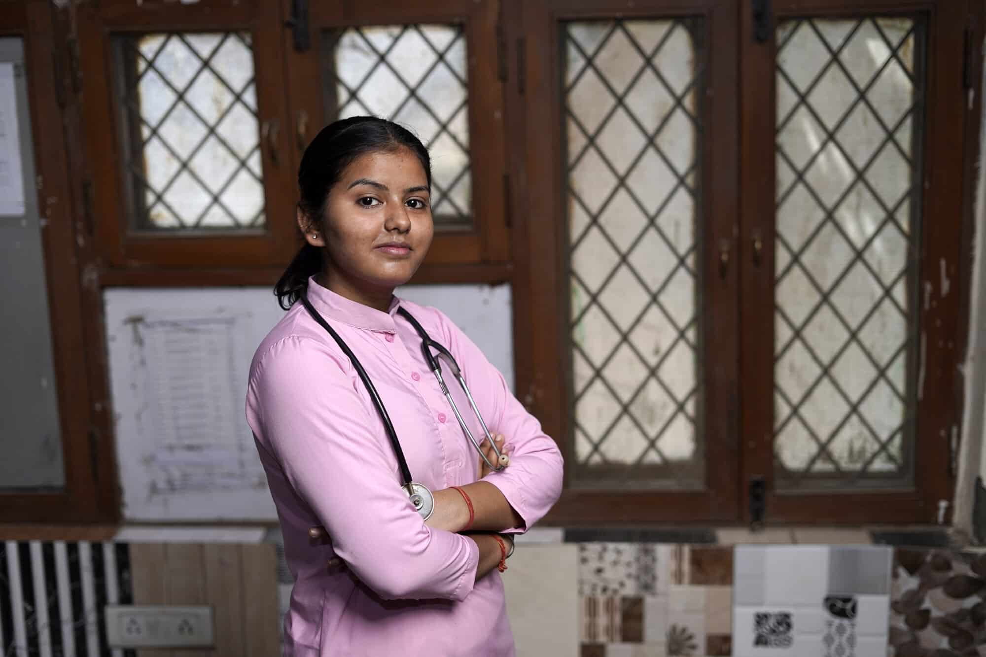 Con 18 años, Neha quería ser enfermera, pero sus recursos eran limitados. Durante una visita educativa descubrió un curso gratuito de enfermería y lo completó. Luego se formó en informática básica, otra barrera que enfrentaba en las entrevistas de trabajo. Dos años después, Neha trabaja como auxiliar de enfermería en un hospital de Delhi. “Sin Plan International y el apoyo constante de mis padres, este sueño no habría sido posible”, dice.