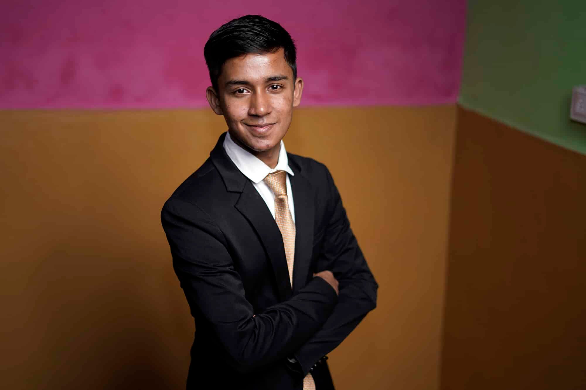 Gautam, de 20 años, terminó sus estudios universitarios sin saber qué hacer. Encadenó trabajos mal remunerados hasta que su madre asistió a una sesión de orientación de Plan International y lo animó a participar. Allí descubrió sus fortalezas y se formó en atención al cliente. Hoy trabaja en el aeropuerto como agente de pasajeros y sueña con crecer profesionalmente.