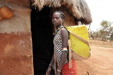 Dawele, de 14 años, vive en Etiopía y la obligaron a dejar la escuela debido a la sequía: “En nuestra comunidad no llueve.  Tenemos que caminar más de ocho horas al día para conseguir agua” Explica.