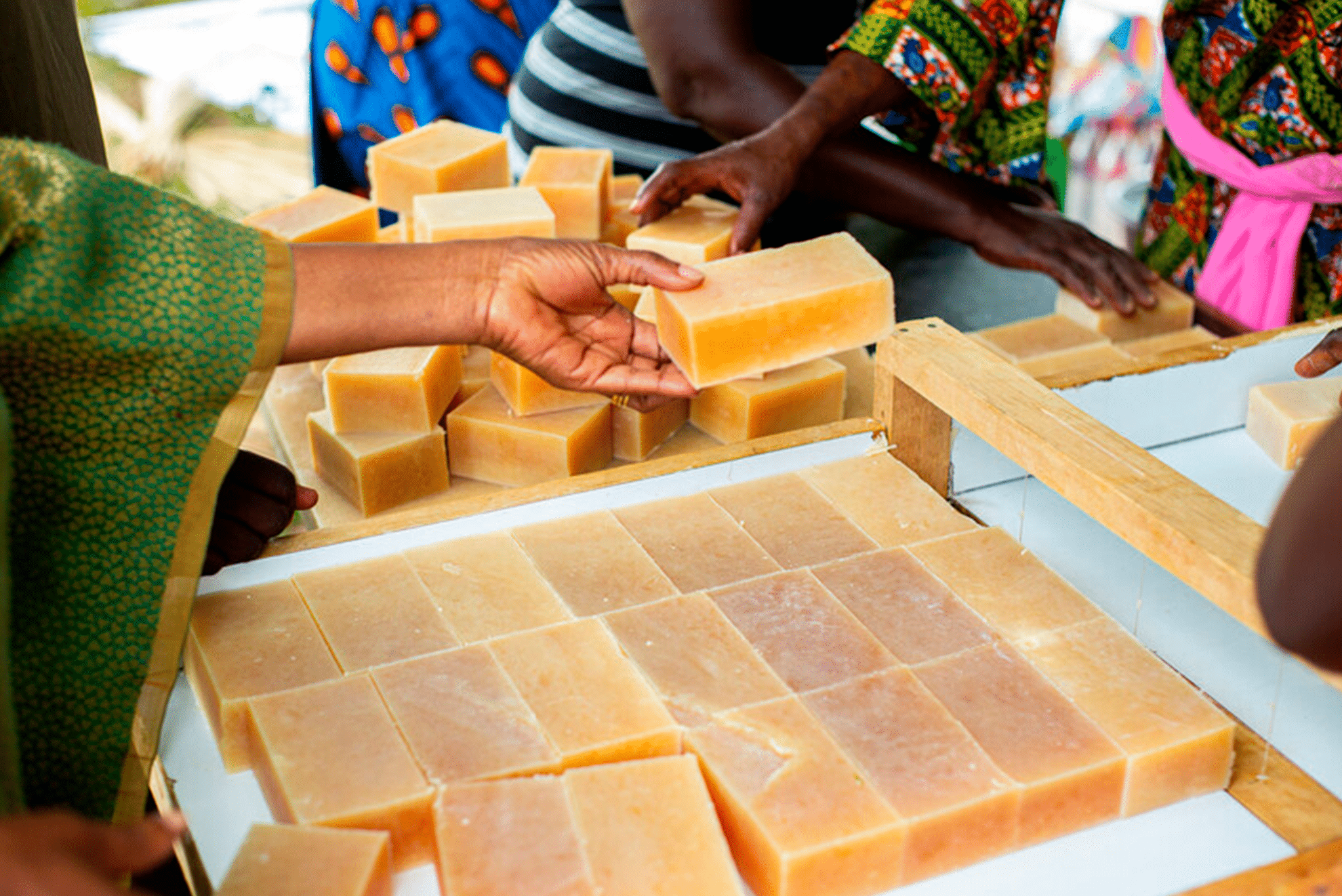“Ahora hago jabón para ganar ingresos y mantener a mi familia”, dice con orgullo. “También lo uso en casa”.