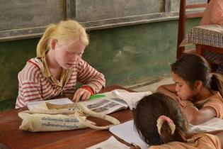 Niños como Bouakham son el blanco de las miradas de todos, pero rara vez les ven de verdad. Muchas veces reciben burlas por su apariencia. Los problemas físicos son otra barrera que impide a los niños albinos participar por completo en la vida de la comunidad. En la mayor parte de los casos, los niños albinos tienen problemas de visión. No pueden ver con claridad, y no es un problema que pueda solucionarse con gafas. Bouakham tiene una discapacidad visual que la obliga a acercar muchísimo sus ojos al libro en clase, a veces a tan solo tres centímetros de la página.