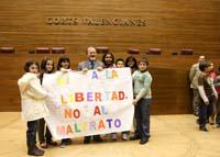 ?, comentaba sorprendido y riendo Alejandro Font De Mora, vicepresidente de las Cortes. En los dos carteles de estos 25 niños que fueron recibidos por Font de Mora, se podían leer las consignas ?No a las diferencias, sí a la bondad? y ?Sí a la libertad, no al maltrato? en relación a la igualdad entre niños y niñas.