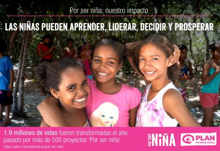 A través de más de 500 proyectos, Plan International consiguió a lo largo de 2015 transformar las vidas de más de 1.9 millones de niñas. Desde su lanzamiento, la campaña Por Ser Niña ha beneficiado a más de 5 millones de niñas. Asimismo, las vidas de más de 40 millones de niños y niñas han experimentado una mejora como resultado indirecto del trabajo de Plan International.