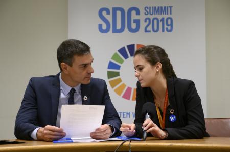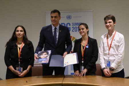Patricia Ramos, joven embajadora de Plan International que participó en la Cumbre Juvenil de Acción Climática del pasado sábado, ha hecho la entrega al presidente del Gobierno en funciones como portavoz de las niñas y jóvenes.