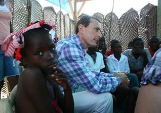 Puerto Príncipe (Haití), 25.05.10. El director de Relaciones Institucionales del Real Madrid y patrono de PLAN, Emilio Butragueño, se encuentra desde ayer en Haití. Allí ha visitado uno de los campamentos de desplazados en la localidad de Croix des Bouquets, cercana a Puerto Príncipe, y ha jugado un partido de fútbol con niños y niñas afectados por el seísmo del 12 de enero.