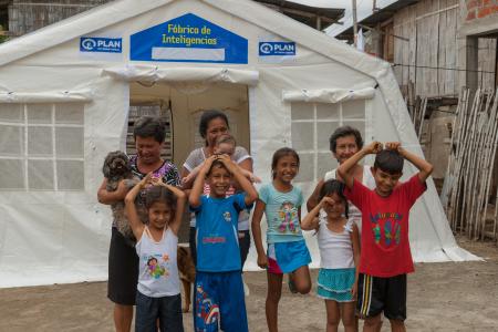 Plan International ha enfocado su trabajo en la protección infantil y ha puesto en marcha 23 Espacios Amigos de la Infancia en los que 2.719 niños y niñas de los cantones de Bolivar, Montecristi, Portoviejo, Rocafuerte, Sucre, Tosagua, San Vicente y Pedernales reciben apoyo psicosocial y participan en actividades lúdicas para superar el trauma.