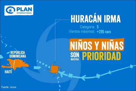 El huracán de categoría 5 es la tormenta más poderosa del Atlántico que se ha registrado en la historia. Actualmente alcanza vientos máximos de 295 km/h, que combinados con oleadas de tormenta representan un gran riesgo para la vida y la propiedad. Las predicciones indican que Irma afectará las partes septentrionales de la Isla Hispaniola (Haití y la República Dominicana), hoy, jueves 7 de septiembre, hora local. Los especialistas de Plan international están en el terreno y vigilan de cerca la situación. Los equipos locales de la organización están trabajando con agencias gubernamentales y comunidades tanto para la preparación como para las medidas de respuesta. “Nuestra preocupación inmediata es la seguridad de los niños y las comunidades en las áreas que puedan verse afectadas”, dice Virginia Saiz, directora de Plan International en la República Dominicana. “Los niños, especialmente las niñas, son los más vulnerables cuando ocurren desastres naturales, por lo que trabajaremos para asegurar que reciban el apoyo que necesitan antes y después del huracán”. En Haití, Plan International ha enviado suministros de socorro a la región noreste. “Haití es uno de los países más pobres y frágiles del mundo, y todavía se están recuperando de la devastación causada por el terremoto de 2010 y el huracán Matthew, que les golpeó fuertemente en octubre de 2016”, dice Concha López, Directora de Plan International en España. “La fuerza del huracán Matthew afectó gravemente las vidas y el sustento de comunidades en áreas rurales expuestas. Las comunidades están extremadamente preocupadas de que lo mismo pueda ocurrir de nuevo”, dice Marie Therese Frederique Jean-Pierre , Director de Plan International en
