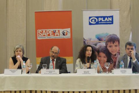 Más de 1.200 jóvenes de zonas rurales de Paraguay han recibido formación laboral en el primer año del programa SAPE’A, implementado por Plan International y el Ministerio de Trabajo de Paraguay y financiado por la Agencia Española de Cooperación al Desarrollo (AECID) y Plan International España. Acto presentación resultados SAPEA Paraguay Más de 1.200 jóvenes de zonas rurales de Paraguay han recibido formación laboral en el primer año del programa SAPE’A, implementado por Plan International y el Ministerio de Trabajo de Paraguay y financiado por la Agencia Española de Cooperación al Desarrollo (AECID) y Plan International España. El programa, iniciado en 2015, busca mejorar las condiciones sociales y económicas de 8.000 jóvenes de entre 15 y 24 años de zonas rurales en Paraguarí, Caaguazú San Pedro y Guairá, para aumentar las oportunidades de empleo y autoempleo. En un acto celebrado en Asunción, el ministro del Trabajo, Empleo y Seguridad Social, Guillermo Sosa; la coordinadora de la Oficina Técnica de Cooperación de la AECID en Paraguay, Cristina Aldama; la directora general de Plan International Paraguay, Mariella Greco, y el gerente general de la Cadena Farmacenter, Héctor González, han presentado los resultados del primer año de ejecución del programa. En los últimos meses, 1.249 adolescentes y jóvenes han completado cursos en habilidades para la vida. Además, 914 adolescentes y jóvenes (53% mujeres) terminaron 52 cursos de formación profesional brindados por el Servicio Nacional de Promoción Profesional (SNPP) y el Sistema Nacional de Formación y Capacitación Laboral (SINAFOCAL). Cabe resaltar que 188 jóvenes comenzaron la incubación de sus ideas de negocios y que los estudiantes han comenzado los períodos de prácticas en distintas empresas privadas que apoyan el programa, de las que cuatro ya han conseguido su primer contrato laboral. El programa tiene el objetivo de conseguir 400 puestos de prácticas y generar más de 3.000 emprendimientos. Cintia, una historia de éxito Cintia tiene 25 años y es de San Estanislao (San Pedro). Es la mayor de 11 hermanos de una familia de agricultores. Pese a la bajada del precio de los productos agrícolas, sus padres la apoyaron con gran esfuerzo para estudiar enfermería. Cintia escogió esta carrera para ayudar a la gente más necesitada. Al terminar la carrera, Cintia tuvo que migrar a Brasil en busca de empleo para poder pagar el costo de su tesina. Allí trabajó en empresas importadoras de ropas que le pagaban por día de trabajo. Esos primeros días fueron difíciles, no conseguía trabajo por el tema del idioma. “Después trabajé con una boliviana, ella era muy buena, me decía que me iba a enseñar portugués y que no era difícil”, explica Cintia. Cintia ha conseguido su primer contrato en una farmacia gracias al programa SAPEA en Paraguay Al regresar a San Estanislao oyó hablar sobre SAPE’A y vio la oportunidad de continuar su formación con un curso de corte y confección para generar algunos ingresos. A la vez, concluyó el curso de habilidades para la vida. Mientras cursaba la formación, Cintia aprovechó la oportunidad de realizar prácticas en la cadena Farmacenter, relacionadas con su formación. Realizó unas prácticas de dos meses donde fue pasando por cada departamento, aprendiendo que se realiza en cada uno: “Lo que más aprendí es sobre computación y el sistema, porque antes no sabía nada”. Cuando se abrió una vacante en la empresa, Cintia utilizó su formación en habilidades para la vida para elaborar su currículum y presentarse al puesto. El 1 de febrero, le confirmaron un contrato de un año. “Me siento muy feliz, orgullosa y eso es gracias a Plan también, porque me ayudaron, cumplieron con lo prometido… cualquier problema, queja que tenía, ellos siempre estuvieron ahí conmigo”.