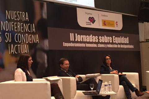La Responsable de Incidencia Política de Plan International, Amelie Gauthier, participó en las "II Jornadas de Equidad: empoderamiento femenino, claves y reducción de desigualdades" convocada por Mujeres en Igualdad La Responsable de Incidencia Política de Plan International, Amelie Gauthier, participó en las “II Jornadas de Equidad: empoderamiento femenino, claves y reducción de desigualdades” convocada por Mujeres en Igualdad. El encuentro propició un marco de reflexión y diálogo en torno a la situación actual de las mujeres en todo el mundo, haciendo especial hincapié en su salud sexual y reproductiva y en la lucha contra la violencia de género en los conflictos armados. Amelie Gauthier habló del papel de las mujeres en los procesos de paz, así como la labor que Plan International lleva a cabo en defensa de los derechos de las mismas, y las acciones para fomentar su participación en el desarrollo económico y social de sus comunidades. En las Jornadas se destacó la necesidad de difundir la realidad de tantas niñas y mujeres que ven sus derechos vulnerados, y la urgencia de llevar a cabo una tarea de concienciación que permita actuar en defensa de la igualdad de oportunidades. Plan International trabaja para conseguir que las voces de las niñas y las mujeres sean escuchadas y respetadas. El fin de la discriminación es un requisito indispensable para cumplir los Objetivos de Desarrollo Sostenible acordados por las Naciones Unidas para erradicar la pobreza, proteger el planeta y asegurar la prosperidad para todos y
